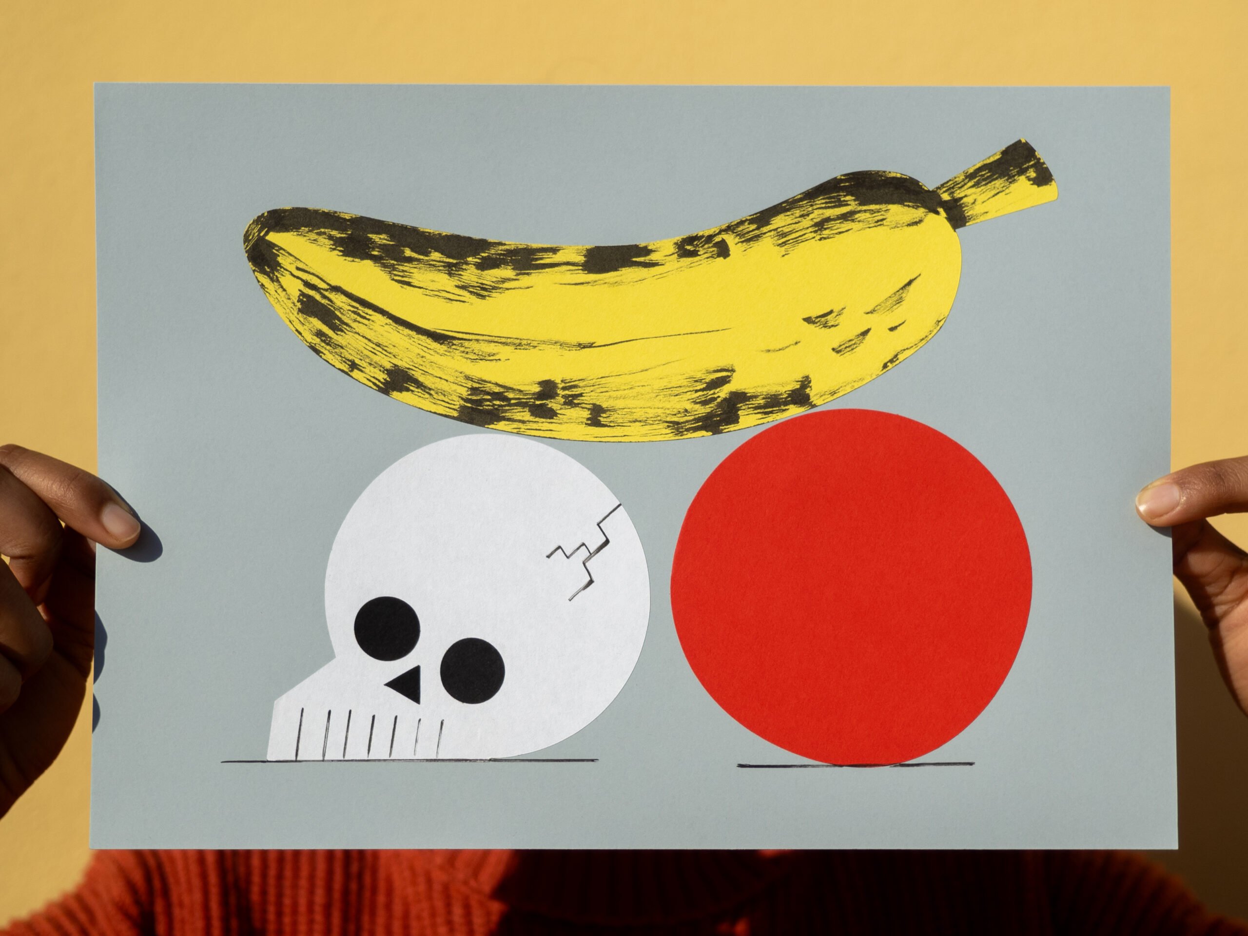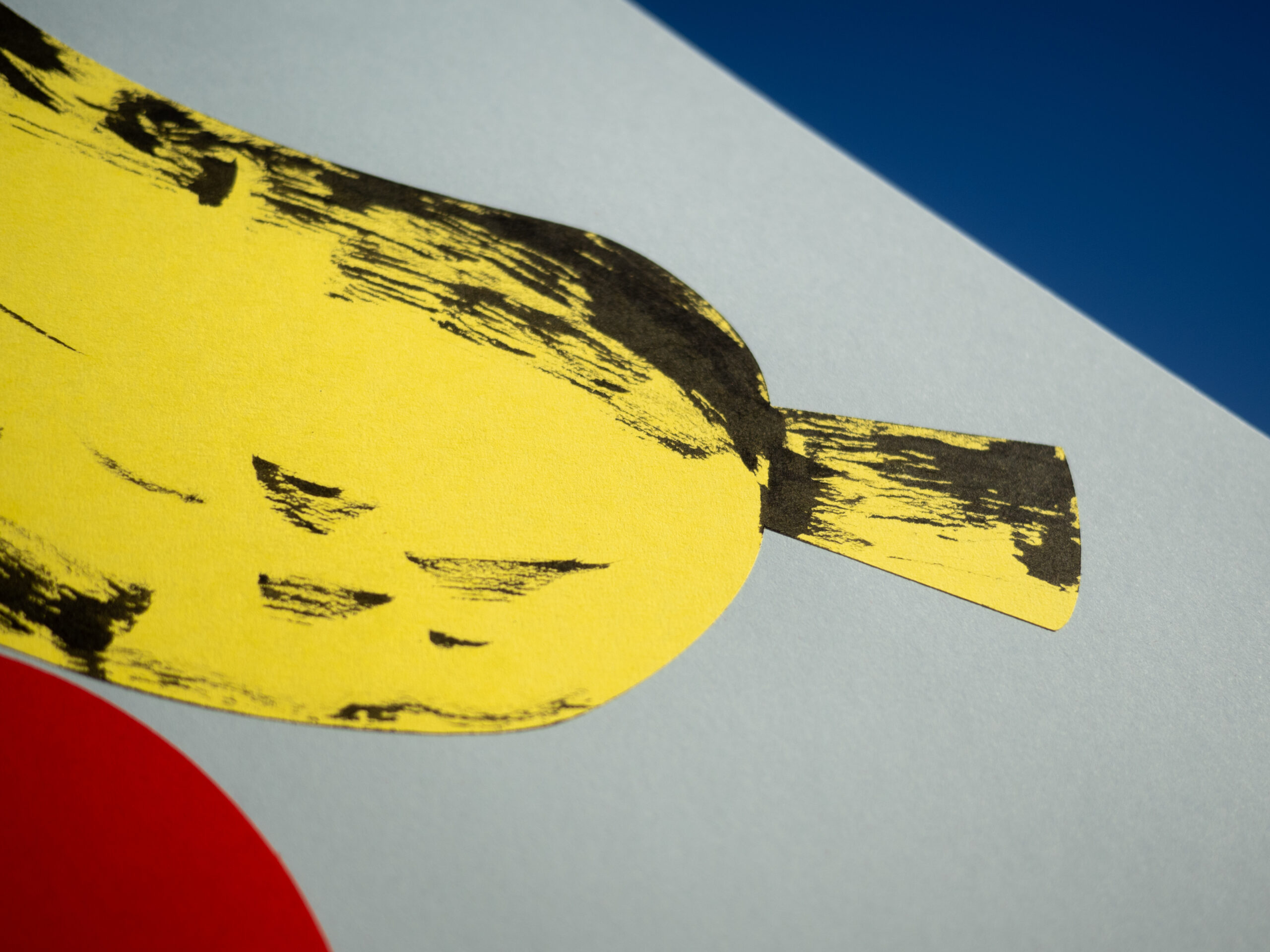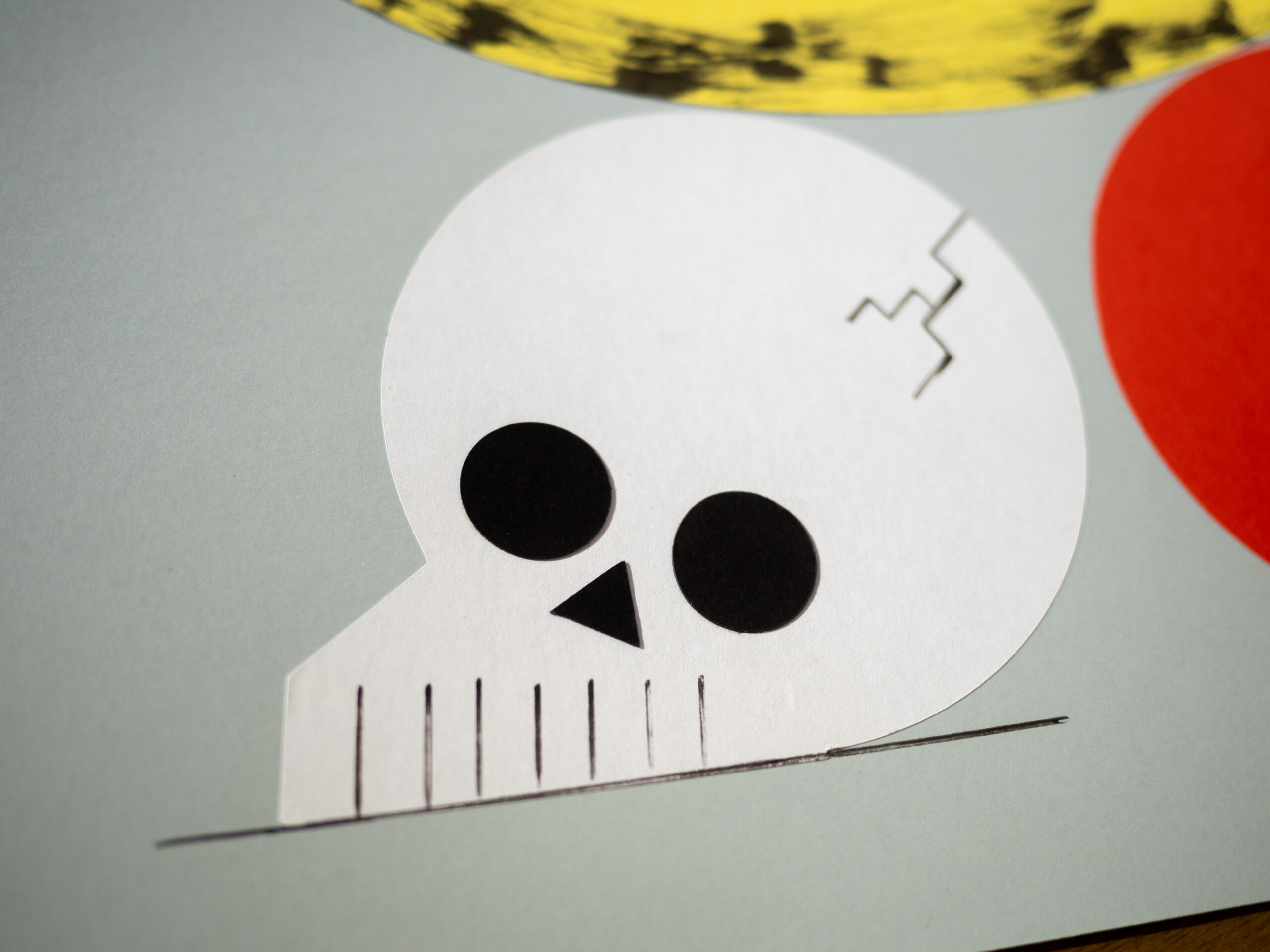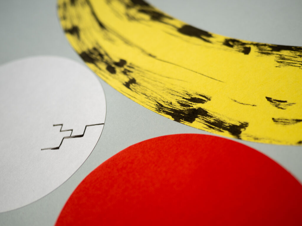 Collage of colored paper and ink on 180 g. cardboard.