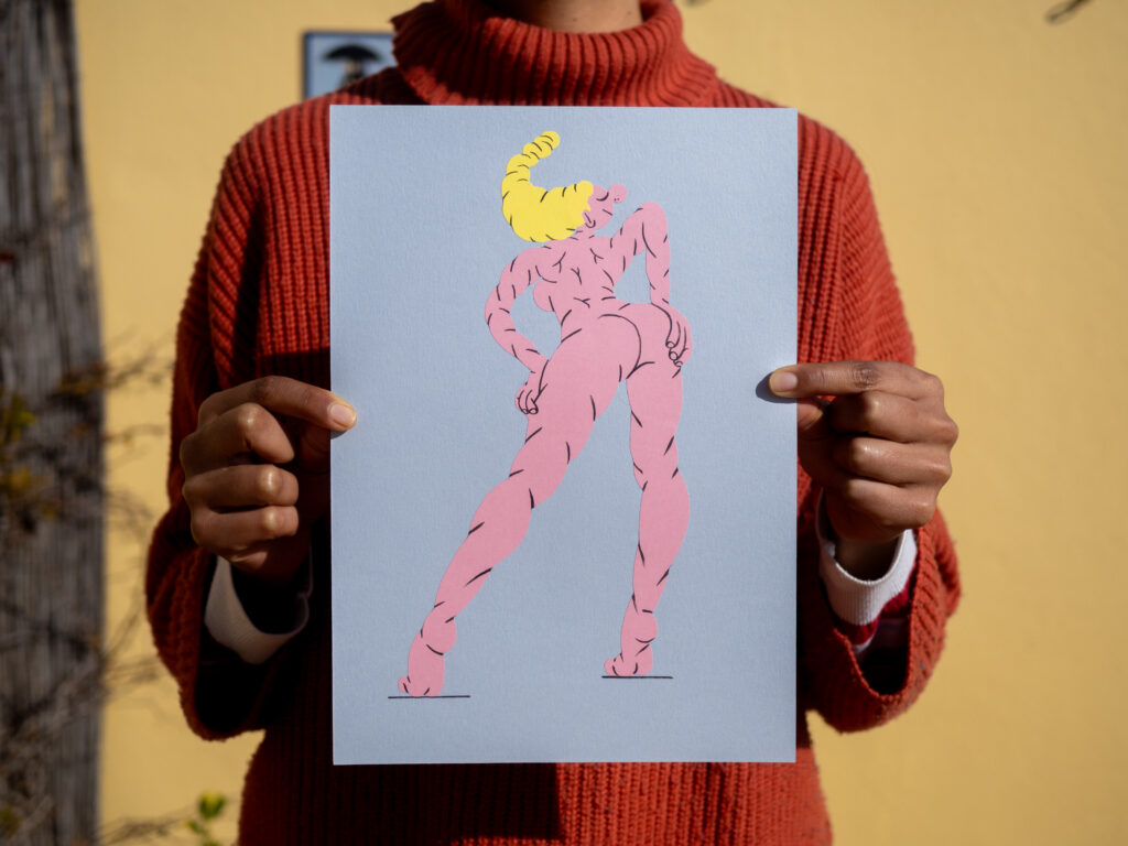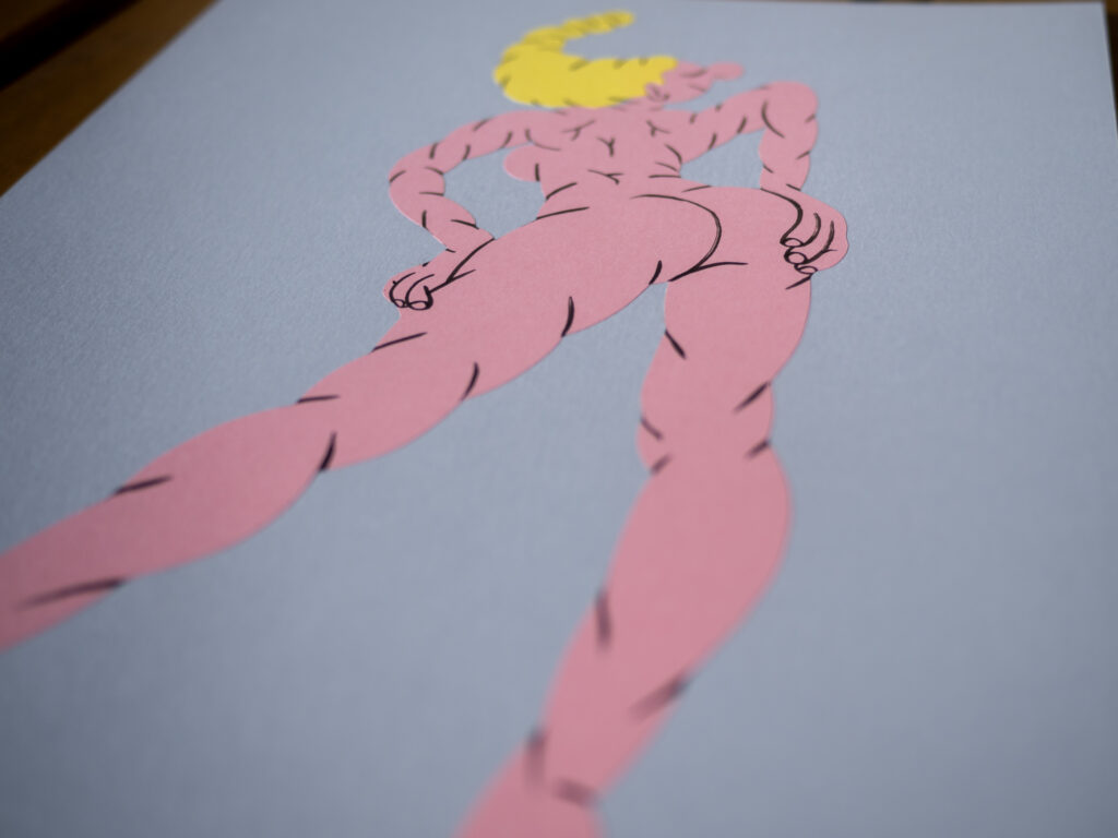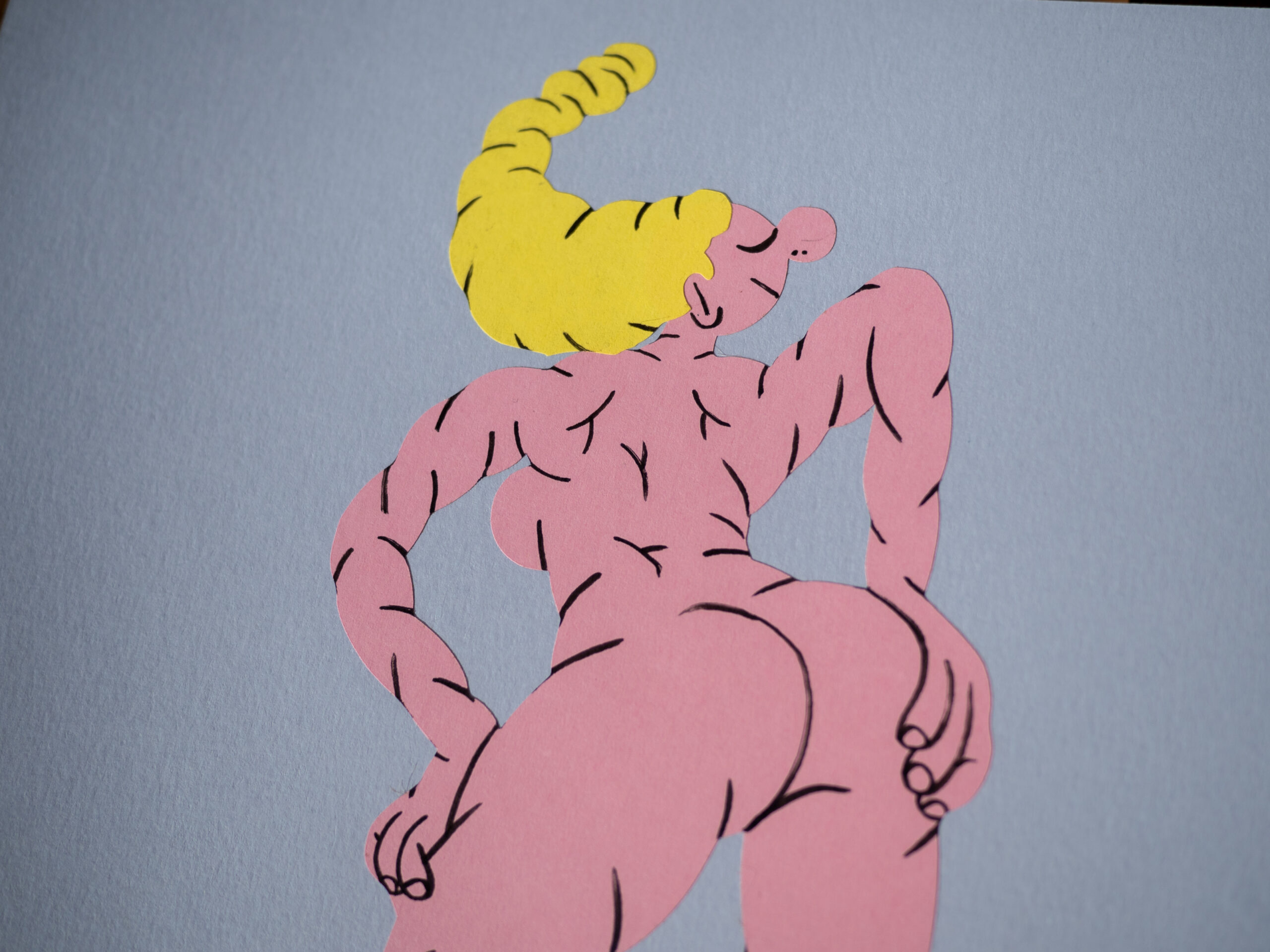 Collage of colored paper and ink on 180 g. cardboard.